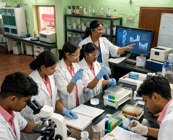 Research activities encourage students to develop scientific thinking, analytical skills, and innovative ideas.